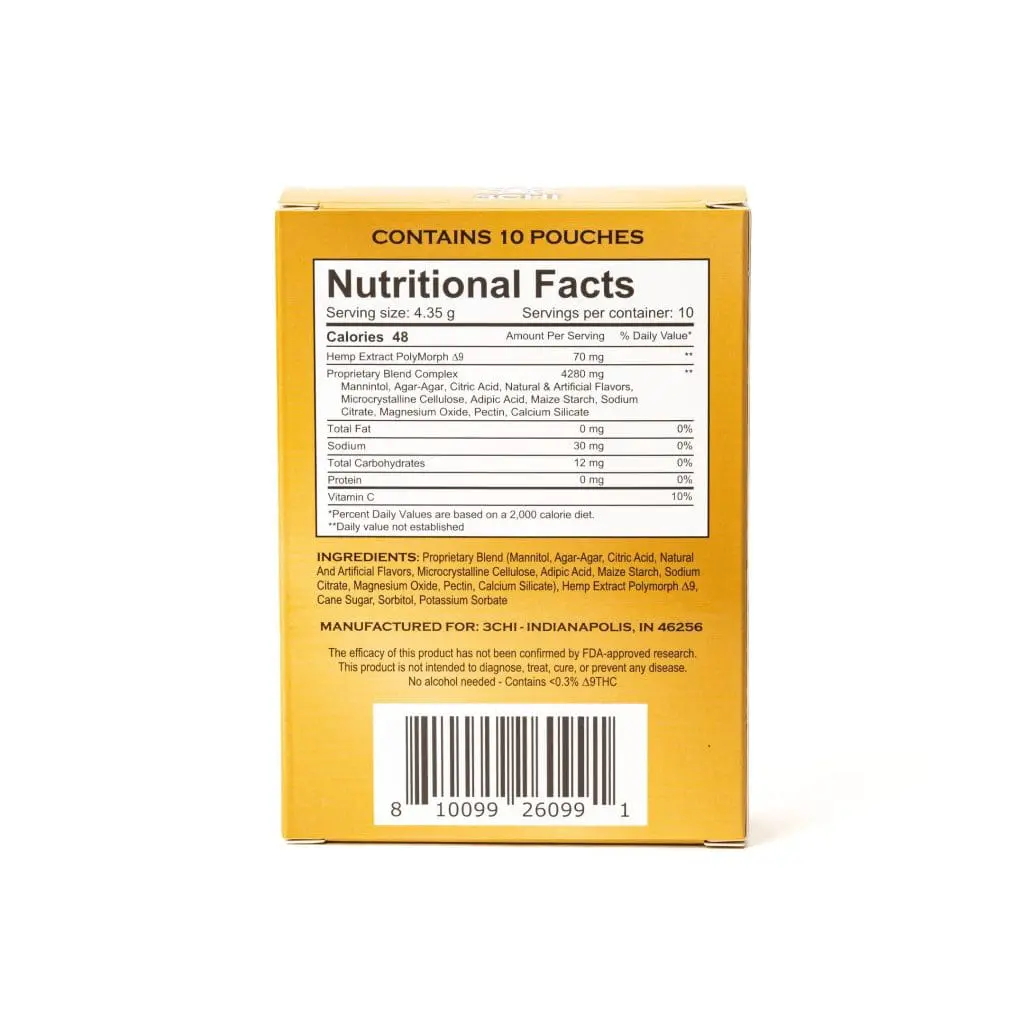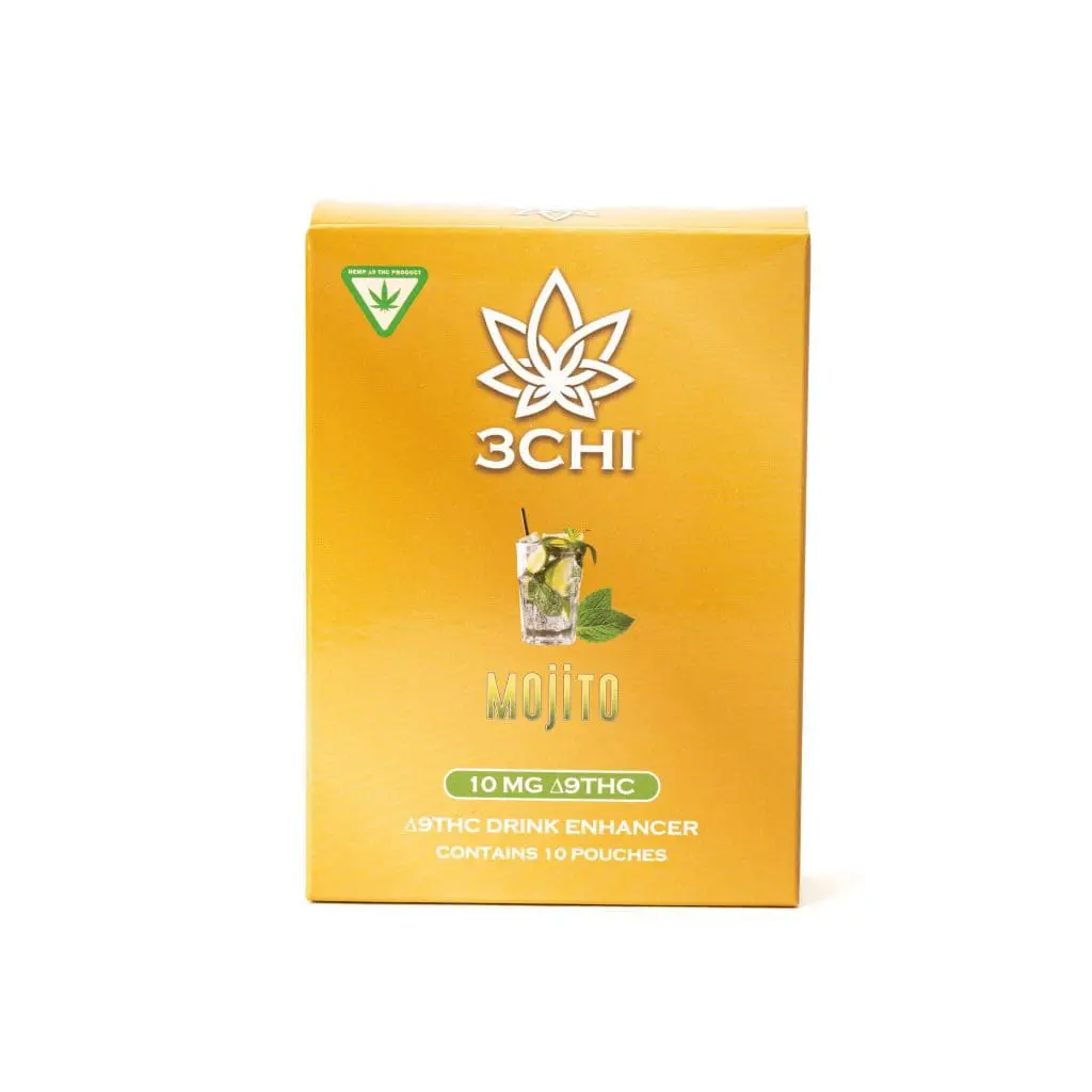 The 3Chi Delta 9 THC Drink Enhancer – Mojito will make every night feel like a warm summer evening with the invigorating  flavor combination of lively citrus lime and garden mint. This dispensary-grade Delta 9 drink enhancer can be added to water or any other drink to transform your mocktail into a cannabis cocktail that will take you on a full mind, body, and spirit experience. This package of drink enhancer includes 10 pouches, each containing 10 mg Delta 9, for a total of 100 mg hemp-derived Delta 9 THC per package.  The patented potent powder inside these drink enhancers is extremely fast-acting and can have long-lasting effects.  This drink technology is has won multiple cannabis awards and is available in 6 delicious flavors.