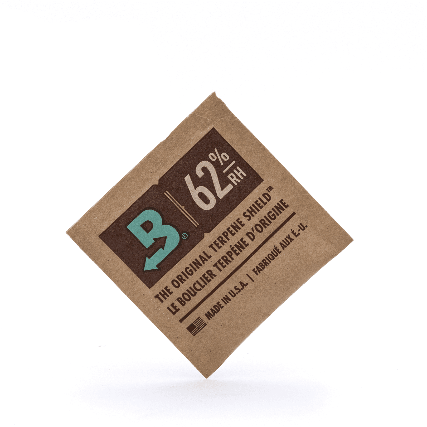Trusted by growers and everyday consumers alike, Boveda B62 packs are the go-to choice for preserving flower in peak condition. Each pack works continuously to adjust humidity as needed, helping extend shelf life and protect aroma, potency, and smoothness. With a low-profile design and effortless setup, these packs are a simple yet powerful tool in any storage routine. Some key benefits include: