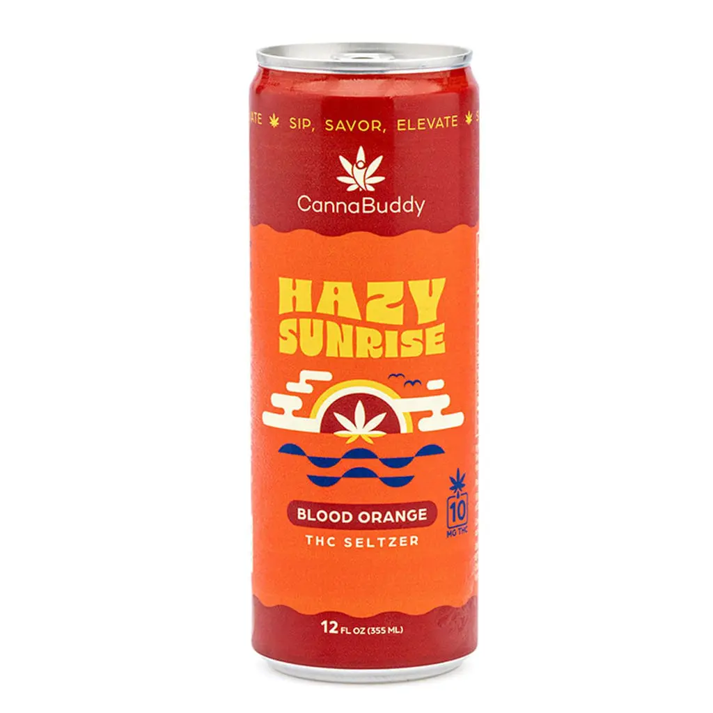 CannaBuddy Delta 9 THC Seltzer – Hazy Sunrise brings forward rich citrus flavor and a steady THC lift that supports how you want to feel at the end of the day. It starts with tangy blood orange and finishes with a clear, mellow ease that doesn’t ruin your morning… or your memory.