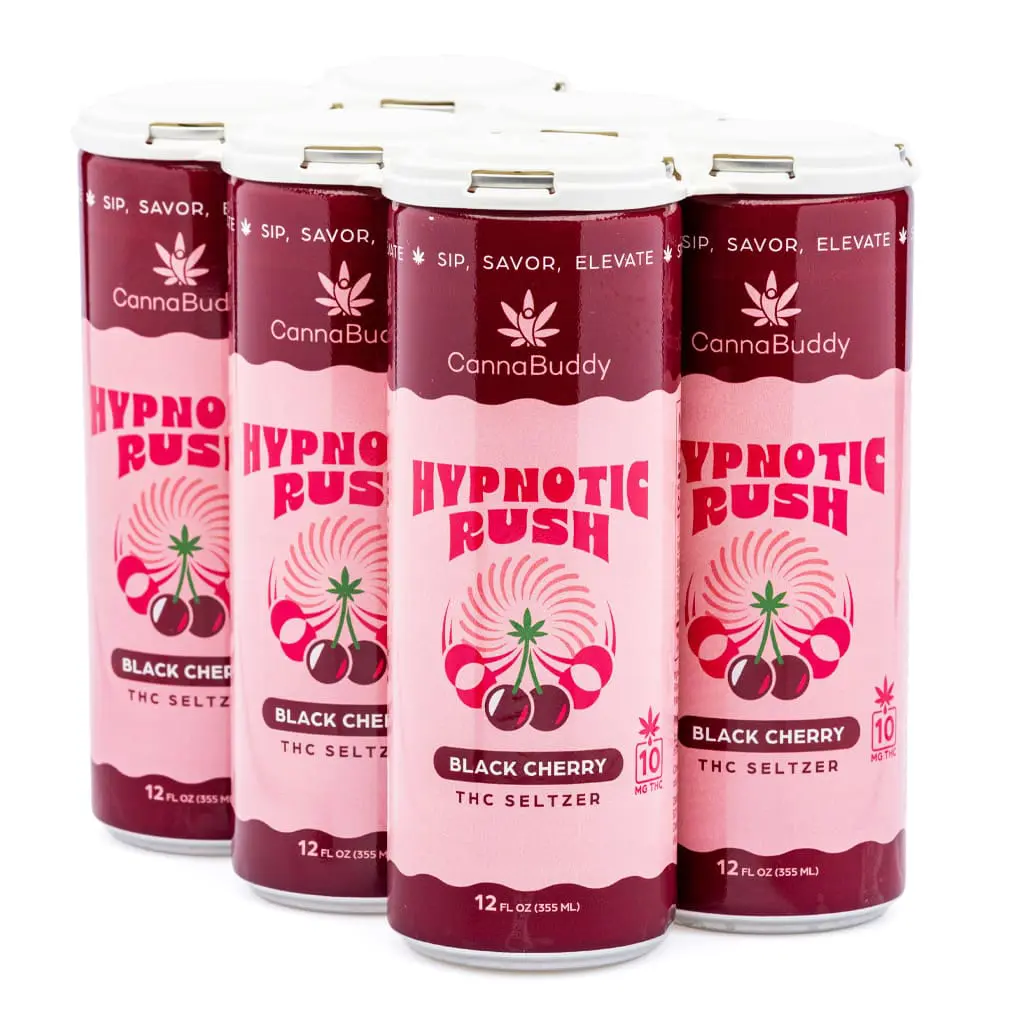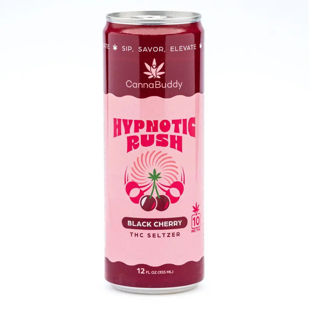 CannaBuddy Delta 9 THC Seltzer – Hypnotic Rush brings deep cherry flavor and a gentle THC lift to your evening routine. This isn’t about zoning out. It’s about finding your rhythm. With nano-infused Delta 9 THC for a faster onset and a smooth feel, each naturally elevated seltzer supports calm focus, social ease, and a promise of great times you will remember.