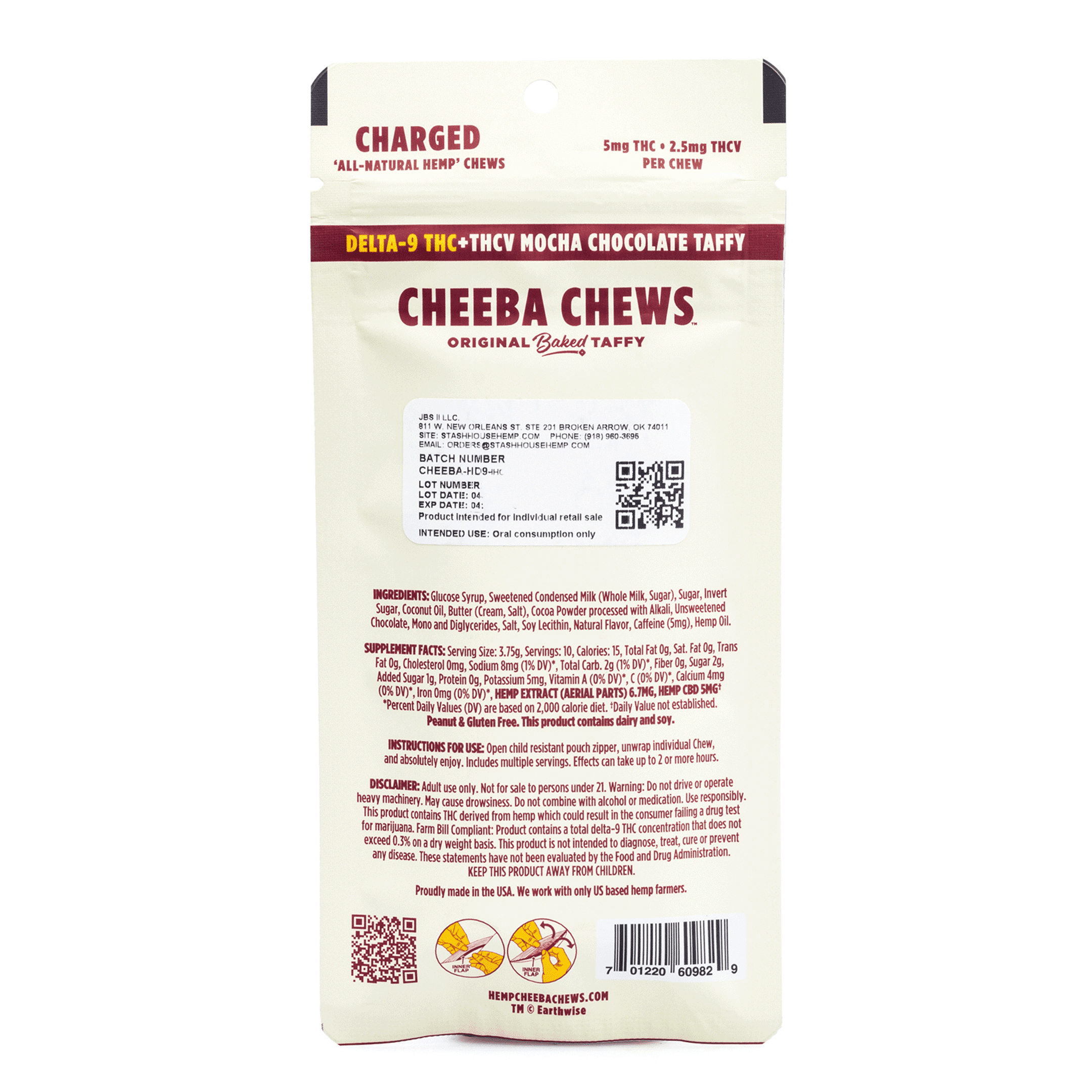 Cheeba Chews Delta 9 and THCv Mocha Chocolate Taffy – Charged (50 mg Total Cannabinoids)