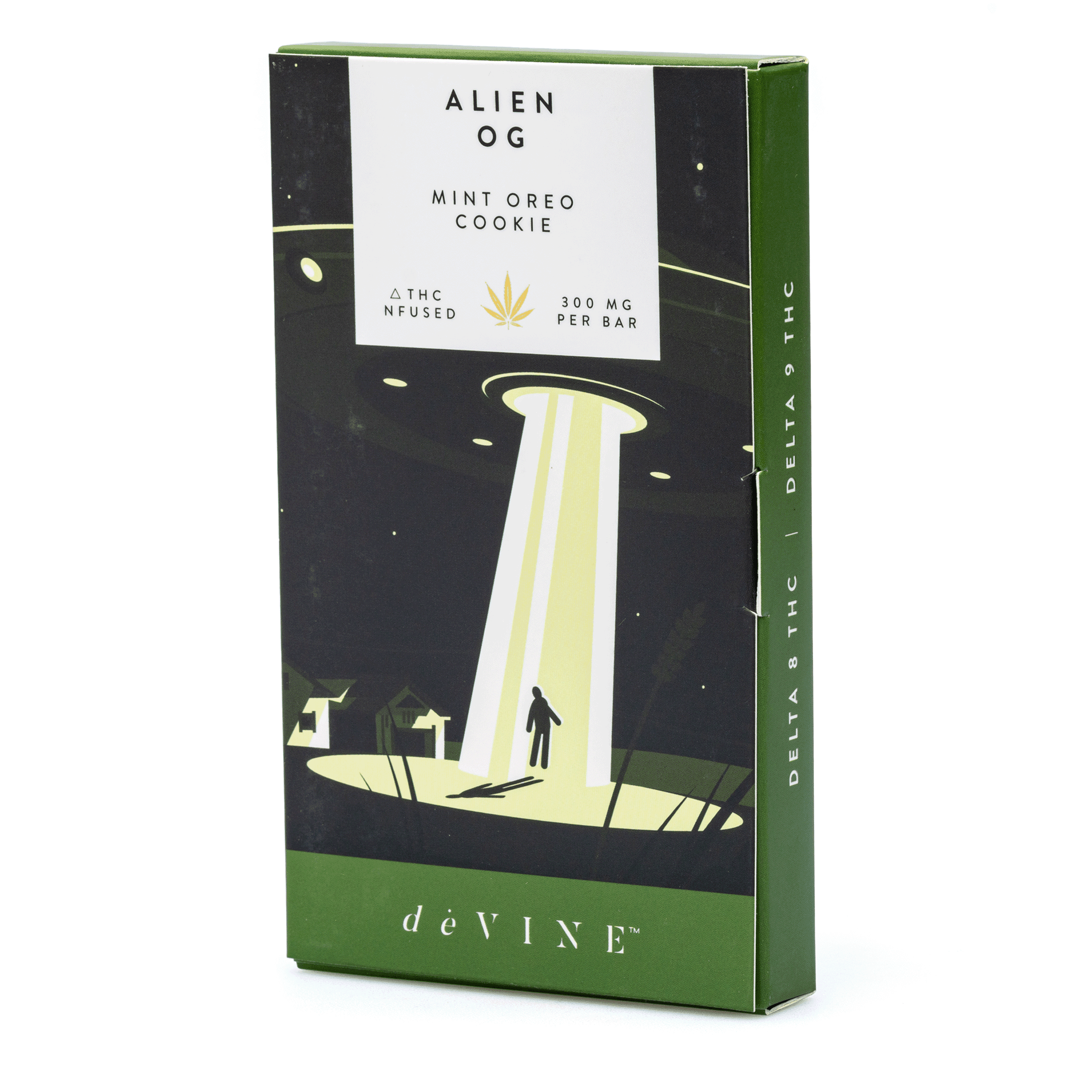 DeVINE Naturals Delta 8 and Delta 9 THC Cannabis Confections Chocolate Bar – Alien OG