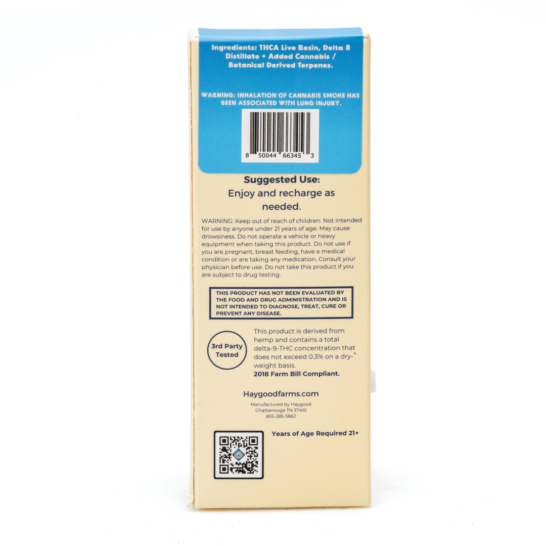 CannaBuddy proudly features the Haygood Cake Berry Live Resin Disposable, a rich and relaxing vape crafted with terpene-packed live resin and hemp-derived THCa. This Indica-leaning blend pairs creamy berry sweetness with the complexity of full-spectrum cannabis, offering a calming euphoric effect that’s perfect for evening wind-downs. The live resin is extracted from Haygood’s 100% US-grown hemp flower and flash-frozen at harvest, preserving the plant’s natural profile for an ultra-smooth inhale and deep, balanced experience.