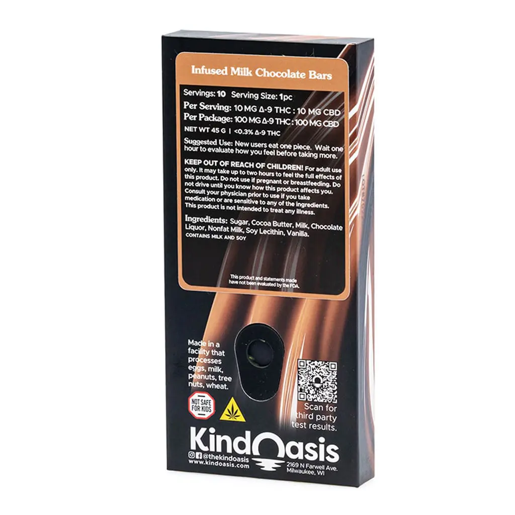 The Kind Oasis Delta 9 THC and CBD Milk Chocolate Bar pairs creamy, melt-in-your-mouth milk chocolate with precisely dosed cannabinoids for a relaxing and balanced experience. With 10 servings per bar and 10 milligrams of Delta 9 THC and 10 milligrams of CBD per serving, this edible makes it easy to enjoy full-spectrum cannabis in a way that’s gentle and effective.
