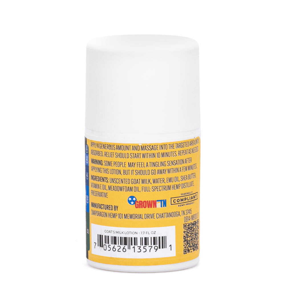 The Snapdragon Delta 8 THC Goat’s Milk Lotion exfoliates skin leaving it smooth and refreshed while relieving minor aches and pains. This generous ration of Delta 8 to CBD is meant to act fast and provide relief where you need it most.