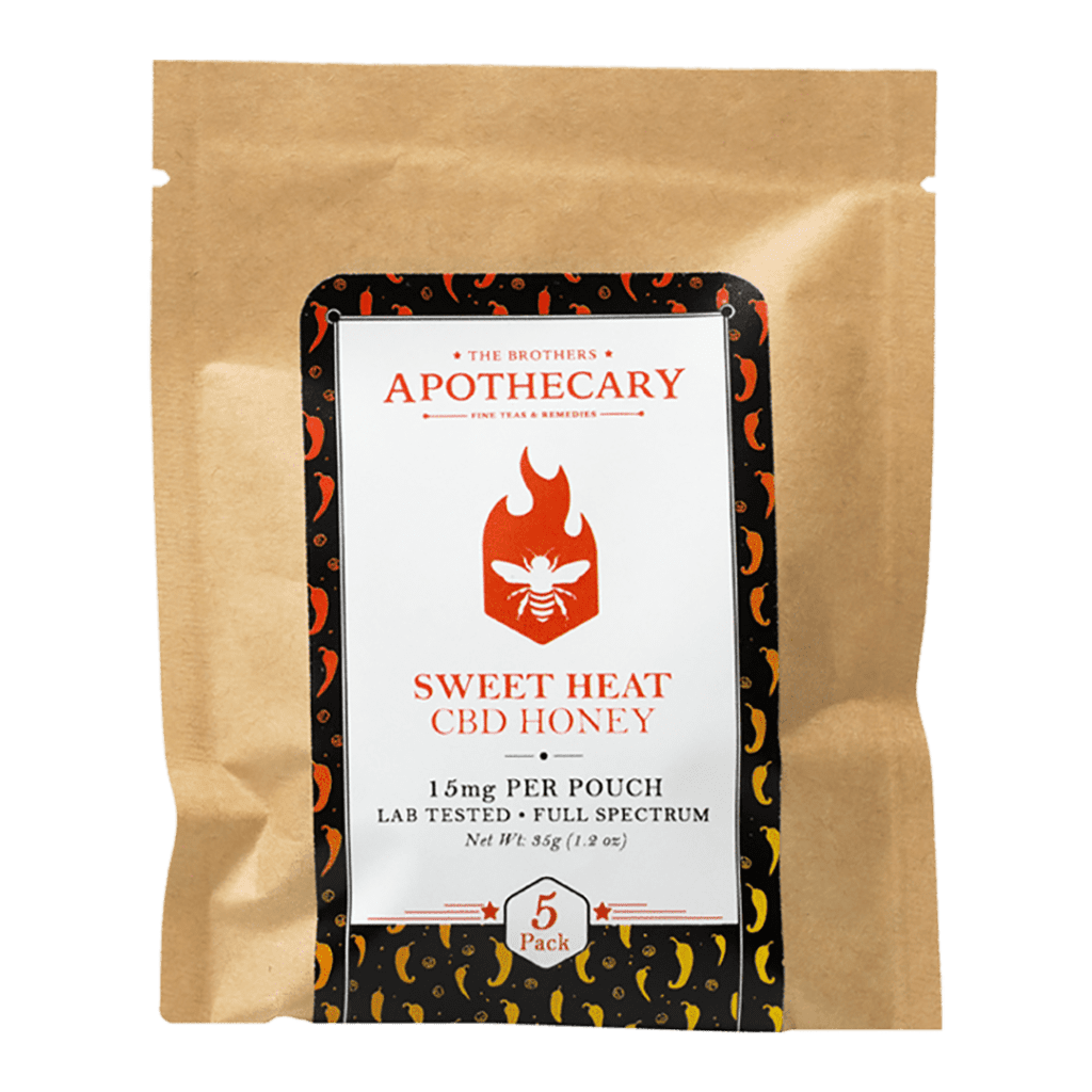The Brothers Apothecary Sweet Heat CBD Honey is a fiery blend of Willamette Valley honey + Peruvian Limo Chili, Thai Chili, Ghost Pepper, and full spectrum hemp extract.